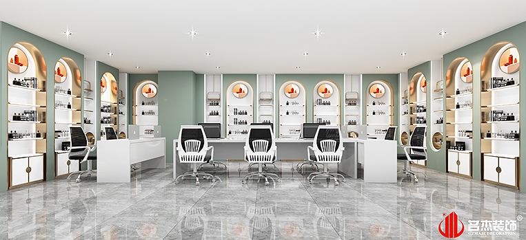 這次美業(yè)紋飾案例中使用的是時(shí)下流行的潮流元素,結(jié)合該行業(yè)是接觸時(shí)尚前端的行業(yè),也是一個(gè)能夠突出美的行業(yè),對此設(shè)計(jì)團(tuán)隊(duì)使用莫蘭迪色系來作為展廳空間的主色調(diào),強(qiáng)調(diào)時(shí)尚元素的同時(shí),還能夠讓空間增加更多的設(shè)計(jì)感。利用吊飾吊燈來作為空間的點(diǎn)睛之筆,空間感強(qiáng)烈的同時(shí),還能夠讓空間的層次感更加突出。